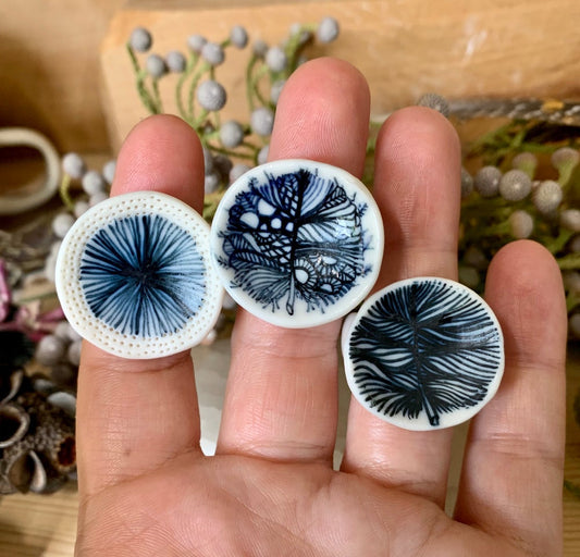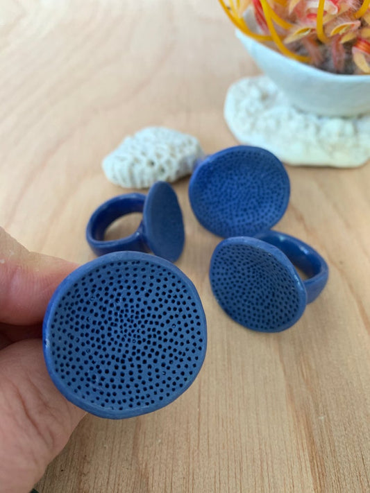 Round bright blue ‘rock coral’ porcelain rings, choose your size