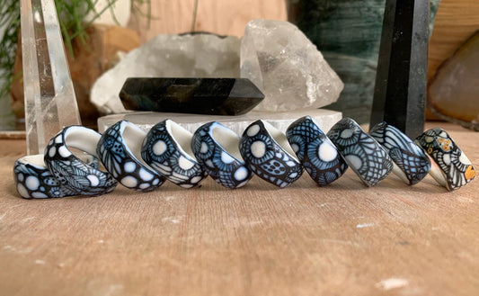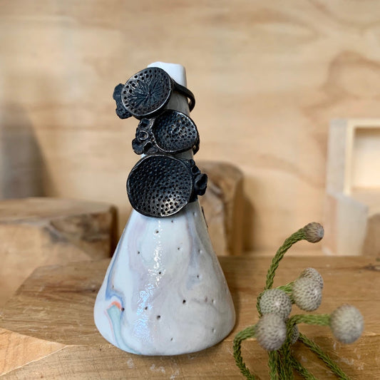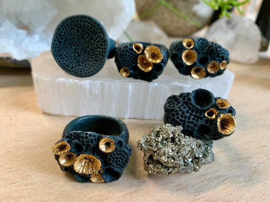 Black porcelain + gold lustre ‘rock coral’ ring, choose a size
