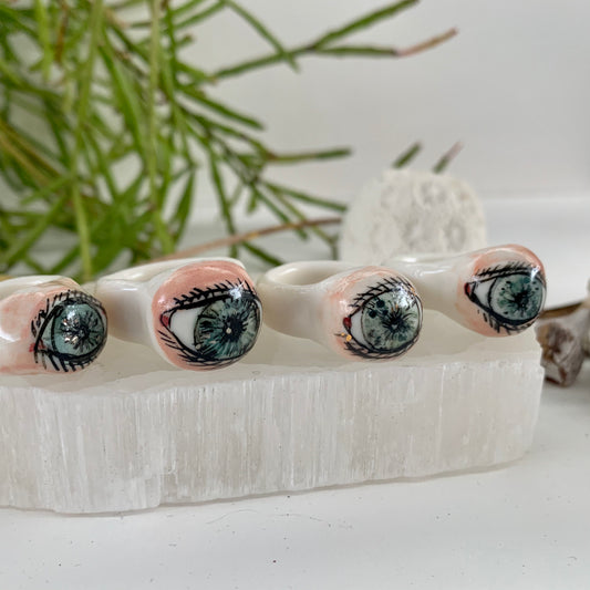 Hand painted porcelain‘the protective eye’ ring, choose a size