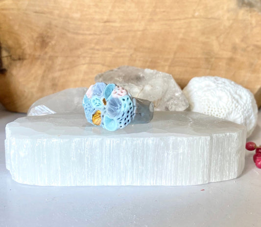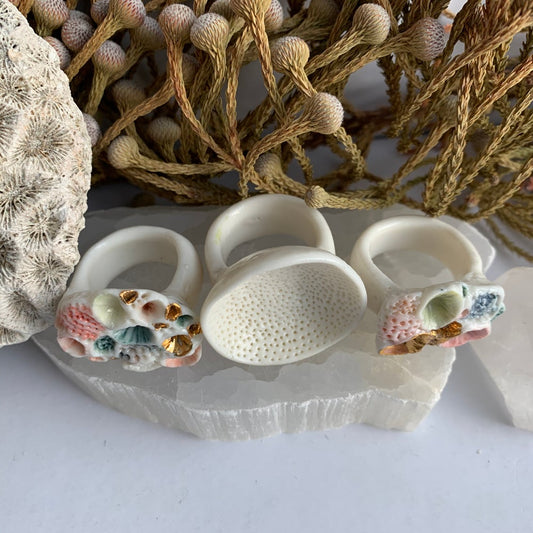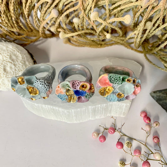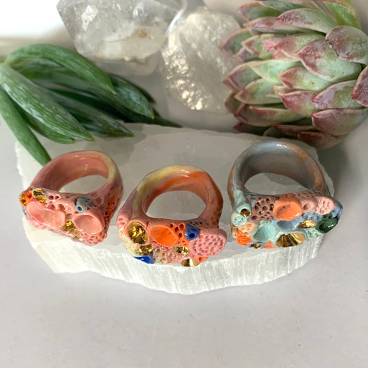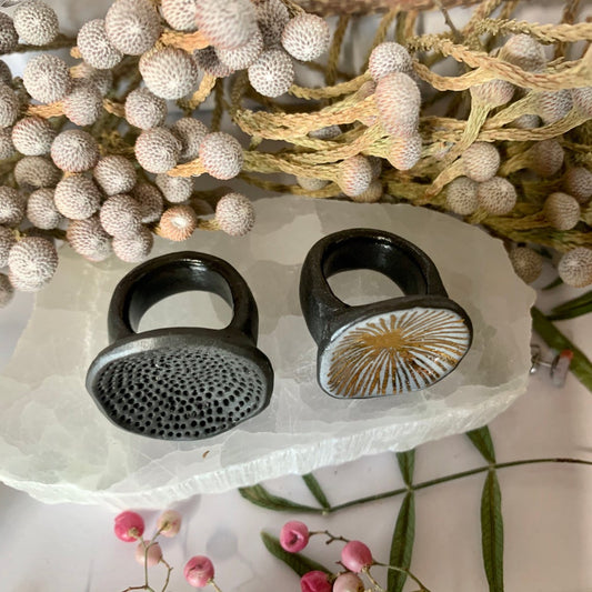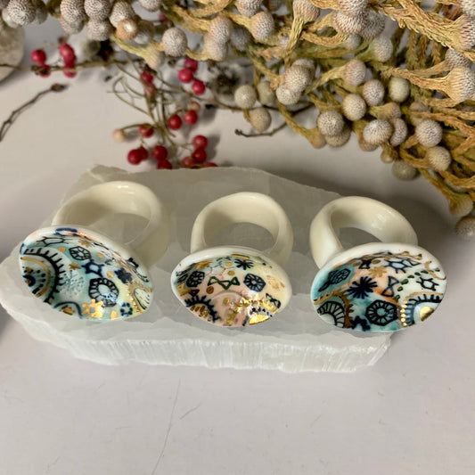 ‘Stars and cells’ hand painted porcelain ring, choose a size