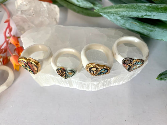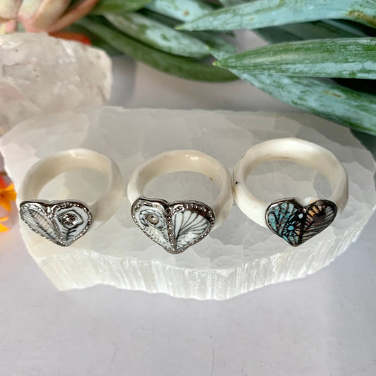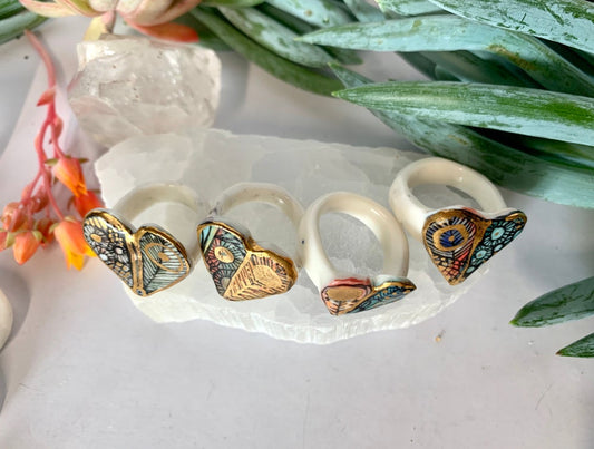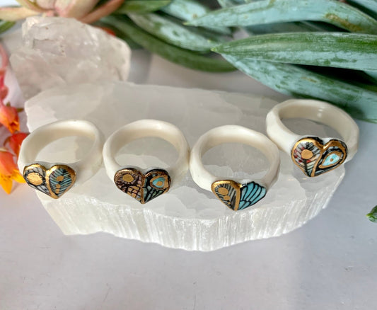 ‘Wings’ porcelain ring, with silver detail, Choose your size