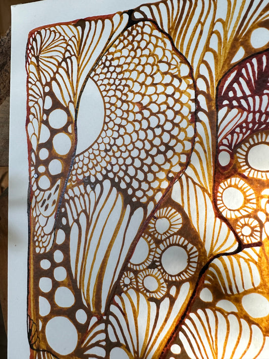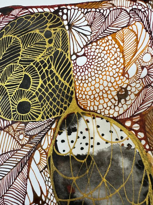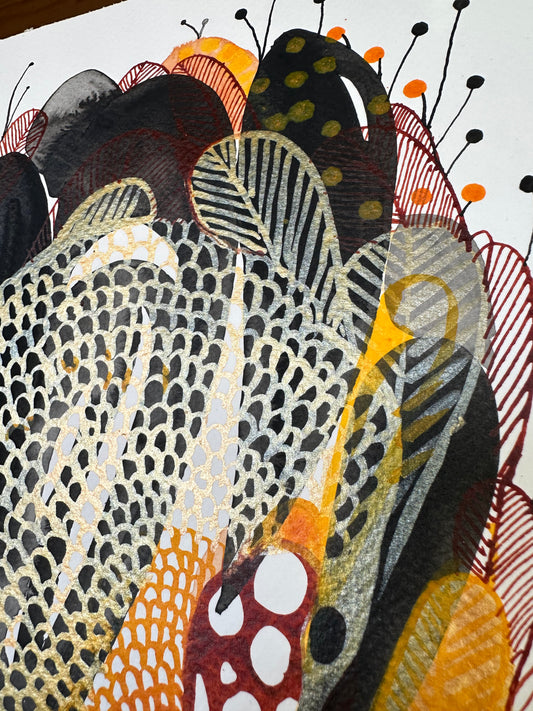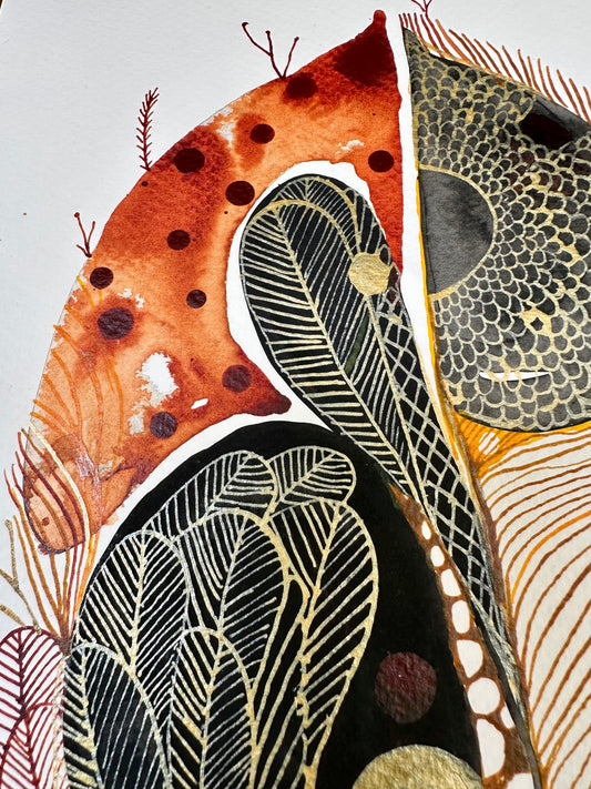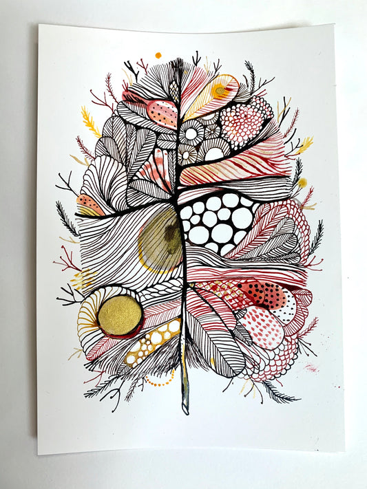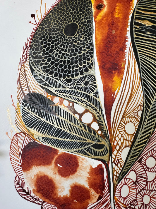 Feather, ochre + gold (A4)