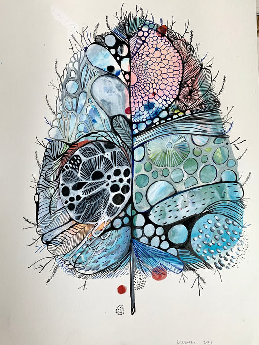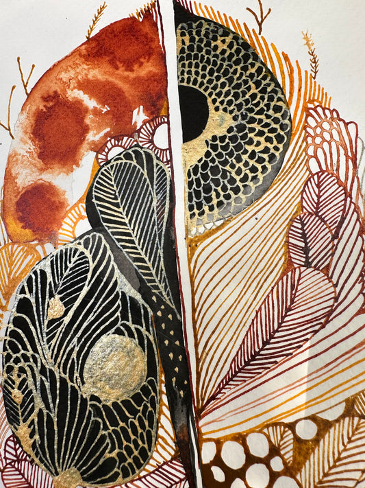 Katherine's artworks are inspired by nature, the Victorian coastline, and the bushland surrounding Castlemaine. She focuses on picking up the small details in natural found objects, such as leaves, feathers and seaweeds. She then creates abstract artworks, that represent different locations, the light, feeling, textures and details from an area.