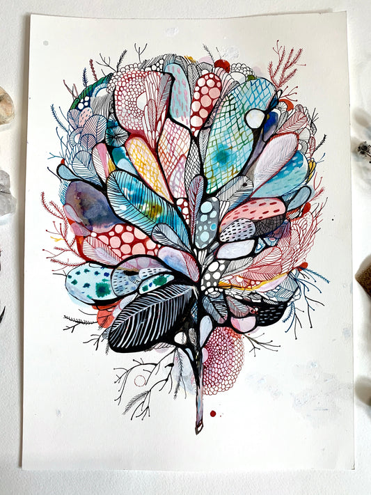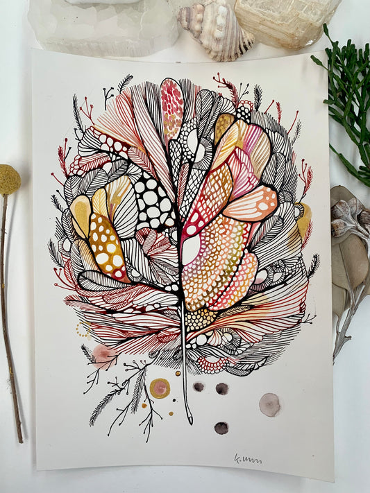 Feather, red ochre series (A4)