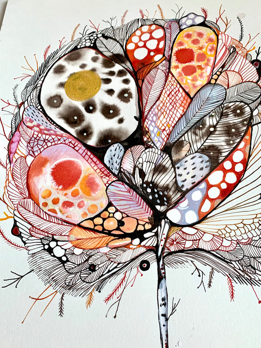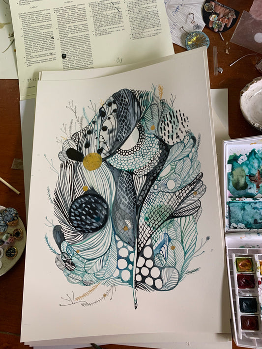 Original Artworks by Australian artist Katherine Wheeler. Hand painted with inks, and or watercolours, on hot pressed cotton rag paper.