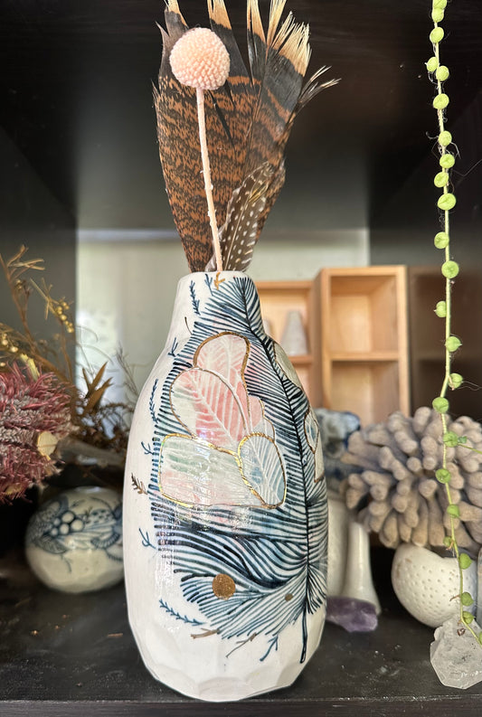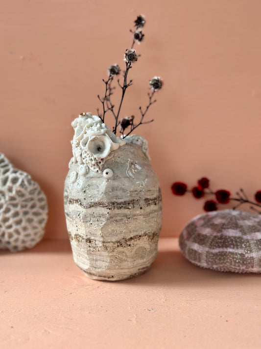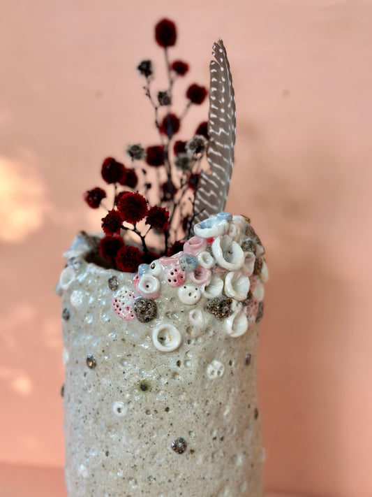 Hand Detailed ‘Coral’ Stoneware and Porcelain Vase