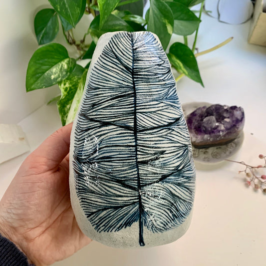 Green ‘Feather’ Hand Painted Porcelain Vase