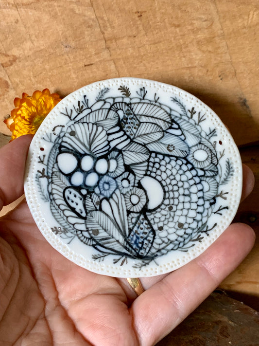 Original ceramic wall art by Australian artist Katherine Wheeler. Hand painted on porcelain or ceramic, with under glaze colours and ceramic stains.